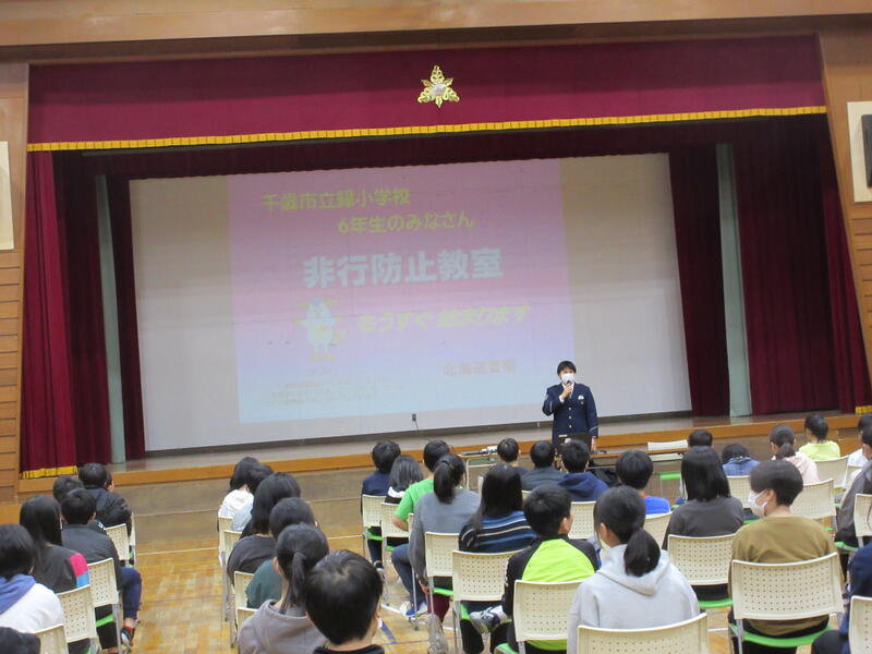6年生を対象に防犯教室が行われました。危険薬物だけでなく、お酒やタバコなど身の回りには乱用すると体に悪い影響を及ぼすということを千歳警察署の方々から教えて頂きました。