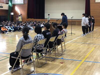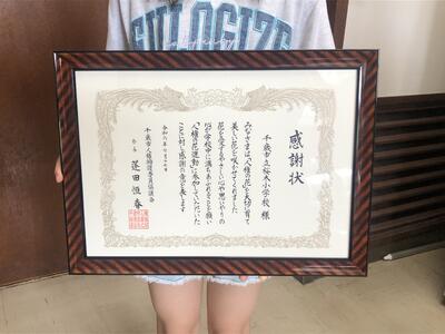校長と児童会書記局3名で受取らせていただきました。