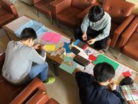 3名は校長室を選び、色画用紙でおもいおもいの作品を完成させていました。