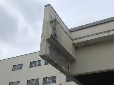児童玄関わきの屋根の出っ張り部分のコンクリートがはがれて落ちそうになっていたので、
