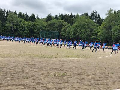 6月18日(土)、本校の第45回運動会が開催されました。曇り空の日が続き、練習は短時間でしたが、「一歩前進~今の自分の全力を出し切り、一歩でも成長できたと感じられるように皆で努力する!!」のスローガンのもと、どの学年も熱心に取り組んでいました。学年の演技、競技の練習はもちろんですが、実行委員会や選抜リレーの子どもたちが、学校の代表だという自負をもって頑張っていました。また、一人一人が係など役割を意識しながら、一生懸命仕事をしていたのが印象的でした。