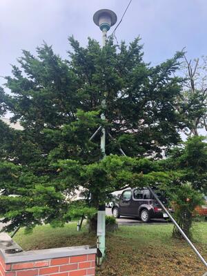 電灯と樹木が、見事に一緒になっています。