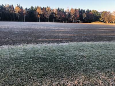 今朝はとても寒く、グラウンドに霜が降りていました。