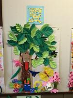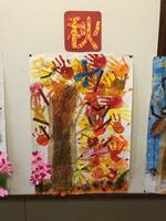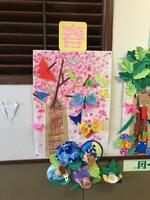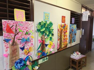 コスモス学級の掲示板に、四季を表した作品が飾られています。