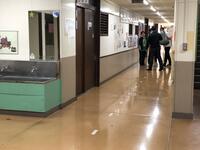 不審者役の身柄がしっかりと確保されたことを確認し、校内放送で、全児童を体育館に避難させました。