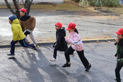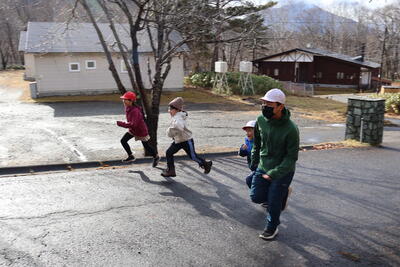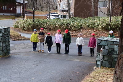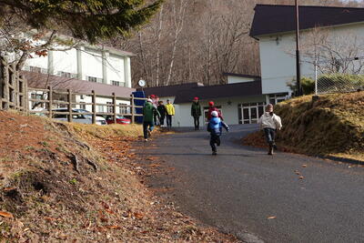 【支笏湖小学校の校門から学校までの坂はかなりの急斜面なのです・・・子どもたちは、息を切らしていました。】