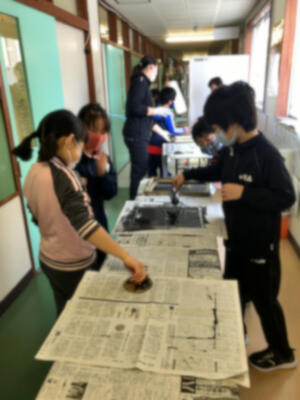 12月24日(木)に3年生(2組)が版画の刷りを行いました。