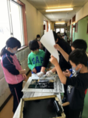 例年、雪が降る季節になると色々な学年が版画の刷りを行います。