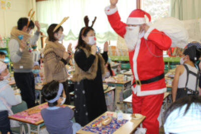 突然現れたサンタさんからのプレゼントに子どもたちは大喜びでした。
