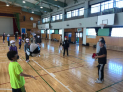 ボールをはじく動きに慣れていないため4年生には、なかなか難しく感じたようですが、お家の方々と楽しみながら取り組むことができました。