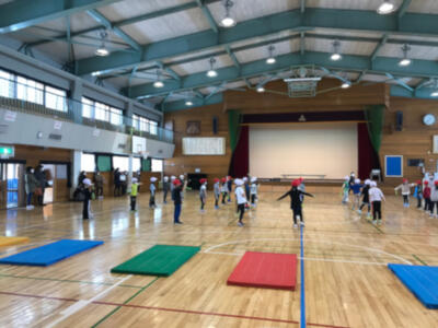 ラジオ体操や縄跳び、マット運動を元気に行いました。