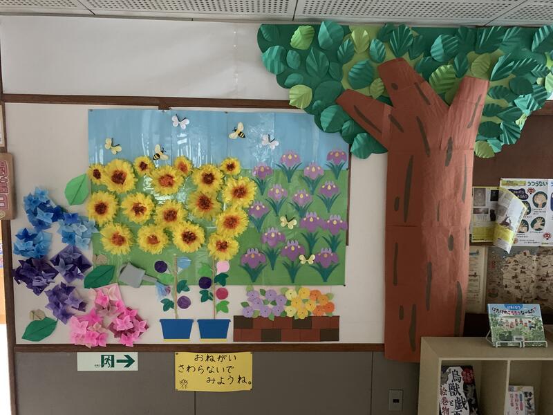 暑くなってきました。図書館前の飾り付けも夏らしい装いになりました。図書ボランティア「ぽっけ」さんの活動に子どもたちもお手伝いしてくれたそうです。皆さん、ありがとうございます。