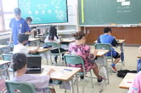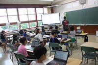 本校では本日と明日の2日間、9:00~10:30の日程で「チャレンジ教室」を実施しています。初日の今日は60名ほどの子どもたちが自習道具を持ち寄り、朝から集中して学習に取り組んでいました。夏休みの風物詩の一つでもあった「分厚い宿題プリント集」はここ5年ほどであまり見られなくなり、必要な分のプリントやタブレットへと姿を変えてきています。タブレットを持参し、学年から配信された「ドリルパーク」に取り組む児童が多かった印象です。配信された問題だけでなく、前学年までの問題にも取り組めるメリットがあるので、深い学びへとつなげることが容易です。