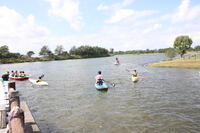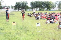 2日目(26日)は「しのつ湖でのカヌー体験・・・新篠津村」がメイン。小樽を出発した際には快晴でしたが、新篠津が近づくにつれ突然の豪雨・・・。現地の方々のご協力もあり、昼食と体験学習の順序を入れ替え、日光を浴びながら無事に体験することができました。