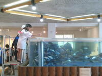 「さけます情報館見学」では、実際にサケの稚魚をすくったり、さわったり、放流したり、エサをやったり、大きなサケに触ったりと、様々な体験をしました。情報館では、サケが卵を産んで孵化する様子等を学習し、しっかりとメモを取ることができました。