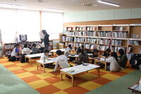 読書月間のイベント「図書館司書による読み聞かせ」を、司書の出勤日に合わせて実施しています。学級ごとに割振りし、この日は4年生が対象でした。