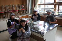 さて連休明けの本日は、校内で様々なできごとがありました。日常の学習活動はもちろんですが、1年生は心臓検診、6年生は苫小牧高等専門学校の出前授業、あさがお学級は調理実習などです。中でも、あさがお学級は自分たちで育てた作物を調理したり、染め物の材料にしたりと、数多くの体験を積みながら学習を行っています。本日は自分たちで収穫した・・・わけではありませんが、先週買い物学習で手に入れた材料を使って、「クレープ」の調理に挑戦していました。フライパンにたねを流し込み、焦げないように気をつけながらヘラを使って様子を見たり、バナナをむいて適量に切ったりと、みんなで協力しながら取り組んでいました。完成して頬張ると・・・やっぱりみんな笑顔!とっても幸せそうでした♪