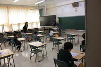 キャリア教育の一環として、青葉中学校の2年生が市内各事業所等で、本日、職場体験学習を行っています。本校にも2年前に卒業した6名が訪れ、学年に1名ずつ分かれ、授業観察や補助等を行っています。教室に中学生のお兄さん、お姉さんが来てくれたので、子どもたちは笑顔で話しかけていました。