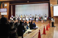 午前授業を終え、全校児童を下校させた後、次年度入学予定の幼児、保護者対象の「幼児教室」を10日(金)午後に実施しました。お子さんたちには3つの教室に分かれてもらい、一斉指示で行動したり作業したりしてもらいました。その間、保護者の皆様には体育館で「就学説明会」を実施。祝梅小学校の概要を短時間でお伝えしました。終了後にはお子さんと合流してもらい、内科検診や耳鼻科検診等を受診。4月の入学への準備を行ってもらいました。