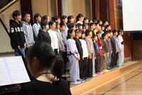 いよいよ明後日に行われる「開校50周年 記念式典」に向けて、在校生として唯一参加する6年生が、儀式的行事に参加するための作法等を学び、式典の流れ(リハーサル)を5校時に確認しました。座礼の練習やイスの座り方、拍手等について、担当者から指導されるたびに、どんどんと吸収していく6年生。その姿は、まるで「卒業生」のようであり、明日が卒業式だとしても恥ずかしくないほど立派でした。本校の「顔」として、50周年記念式典に素晴らしい姿で参加してくれることでしょう。