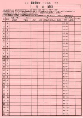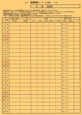 今年も引き続き、健康観察シートへの記入をお願いいたします。