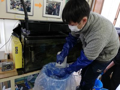 2年生と環境委員のお世話で、サケの稚魚たちはすくすくと育ってきました。