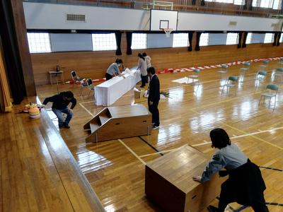 各教室の様子です。体育館で健康観察などを行なったあと、学級にある荷物を持ちます。今後の分散登校で少しずつ持ち帰ることにします。 荷物を持ったら、そのまま下校します。