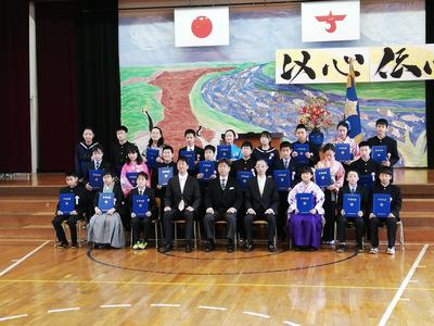 式練習ができない中で、子どもたちの緊張している様子も見られましたが、校長先生から卒業証書を全員しっかり受け取りました。
