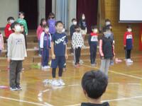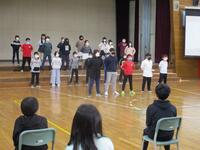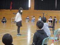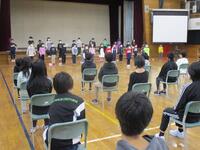 体育館にいる6年生のところへ、各学年が順に赴き発表やプレンゼンとを渡すという活動でした。