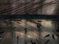 校内の水槽では、サケの稚魚が元気に泳いでいます。