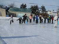 グラウンドには、この休みの間にスケートリンク作りが進んだようです。