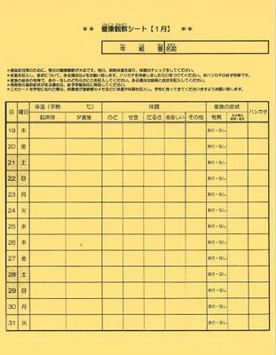 1月も健康観察シートへの記入をお願いします!