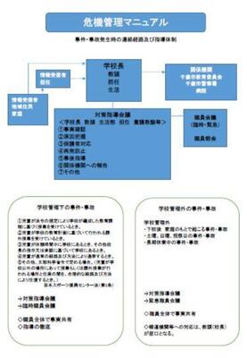 子供たちが、安心・安全に学校生活を送ることができるよう、様々なケースを想定して危機管理マニュアルを作成しております。ご確認ください。