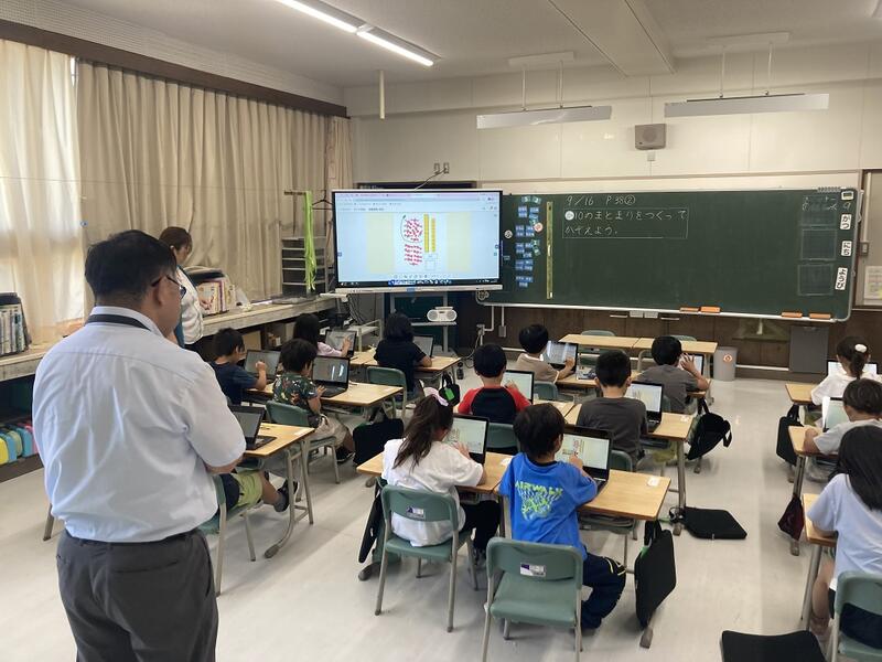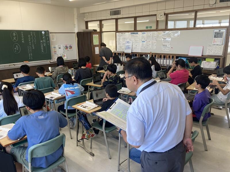 今年度4月に着任されました、北海道教育庁石狩教育局より、義務教育指導監様が来校されました。さらに質の高い学校を経営するためのご指導をいただきました。また、各学級の授業を参観され、より主体的で対話的で深い学びの視点から、ICTや対話活動を通した「個別最適な学び」と「協働的な学び」を一体化した授業改革についてのご指導もいただきました。