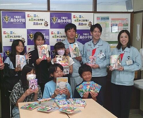 毎年、理科の学習でご協力いただいている、(株)デンソー様から図書室で使用する本35 冊を寄贈していただきました。児童を代表して書記局の児童が受け取りました。感謝申し上げ、大切に活用させていただきます。
