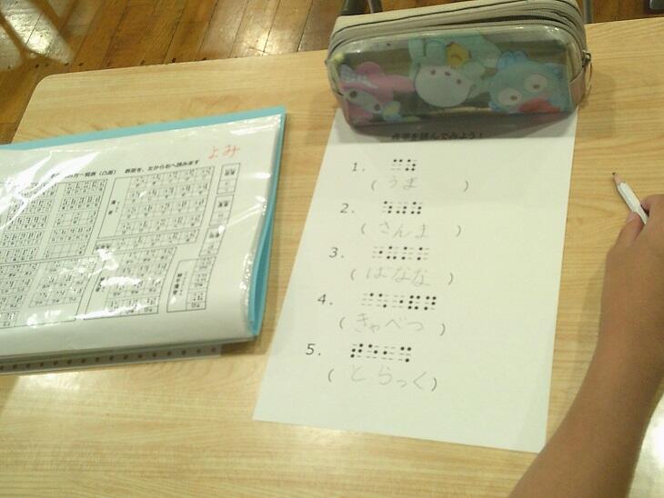 4年生が目に障害のある方を講師にお招きして点字学習を行いました。点字を学び、物の名前や数字、物語の長文にもチャレンジし、最後まで高い意欲と関心を持ちながら取り組んでいました。