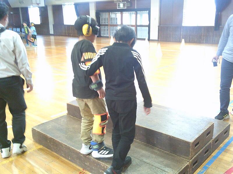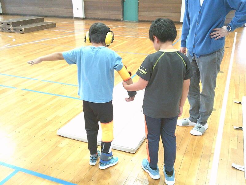 4年生は総合的な学習の時間の中で、福祉に関する学習を中心とした「ふれあい学習」に取り組んでいます。ガイドヘルプ体験や点字、手話を学び、今回は高齢者の疑似体験を行いました。筋力が低下したこと想定し、自由が利かないようおもりを装着し、また、視力が低下した時の様子が体験できる眼鏡を付け歩行し、介助する体験も行いました。