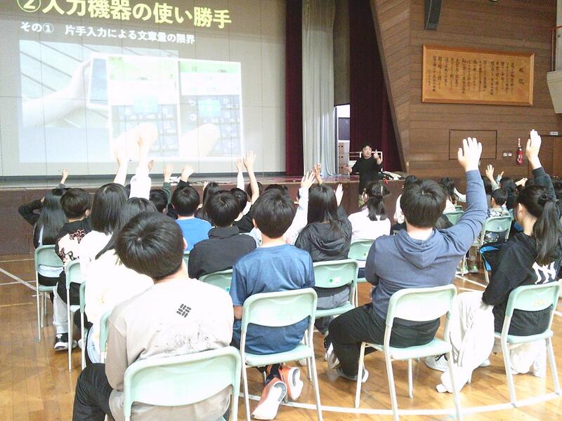 富丘中学校の先生が来校して、6年生がSNSでトラブルに遭わない、また、トラブルの原因を作らないなどの授業を受けました。E-mail(メール)やチャット、LINE,Xなど、良い点や留意しなければならない点を教わりました。特にメール文章の短縮・簡略化から、また、急いで返信しようとしてメールの内容が誤解されてトラブルになることが多いことを学びました。先生の説明に子どもたちは、うなずく場面が多くあり、「あるある」「なるほど」「そうだったんだ」などの声が聴かれ理解を深めていました。