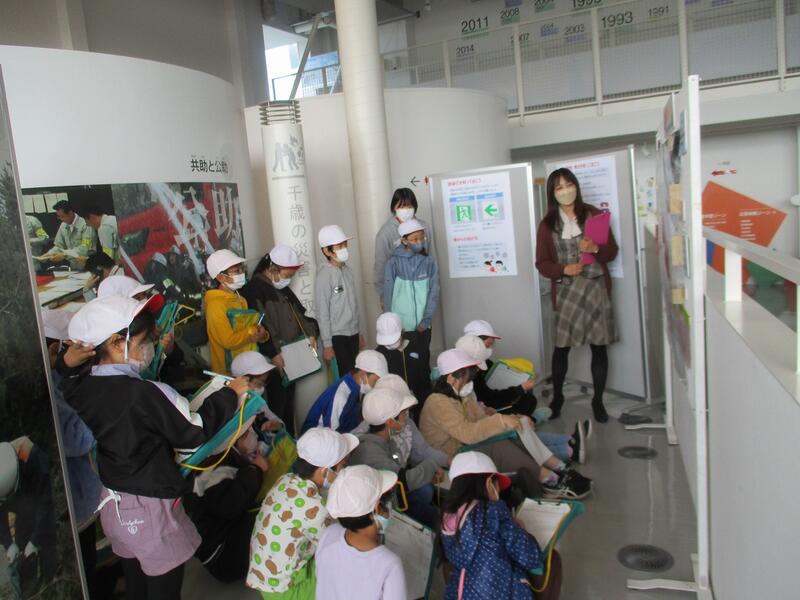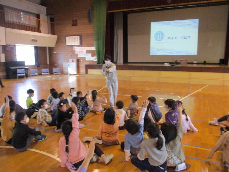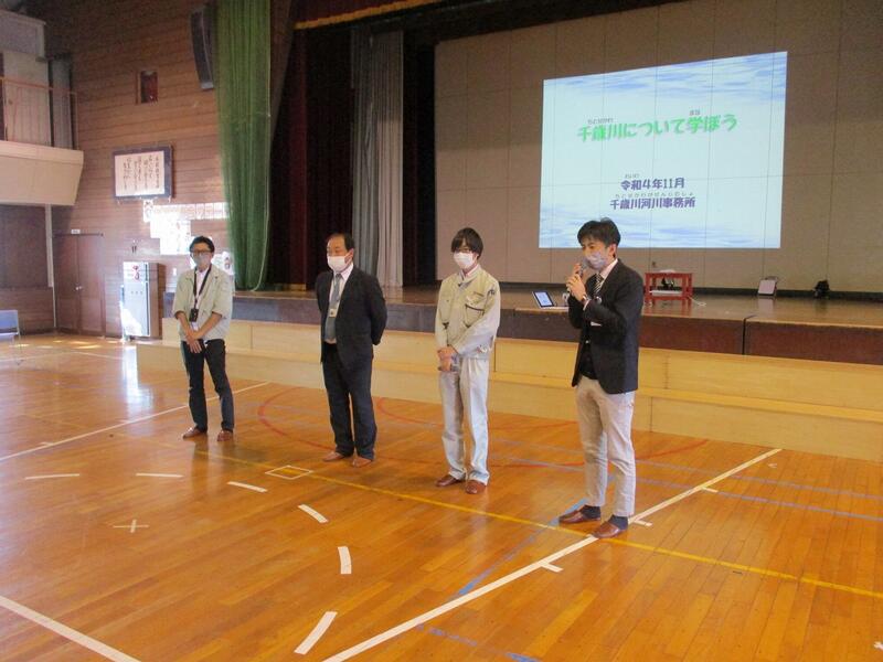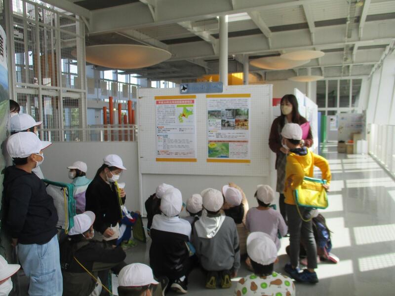 千歳川河川事務所の方に、千歳川のことを教えてもらいました。千歳川のはじまりとおわり、魚、虫の話をしてもらいました。河川事務所の方は、1年生なのに話の聞き方が立派だったと驚いてくれていました。