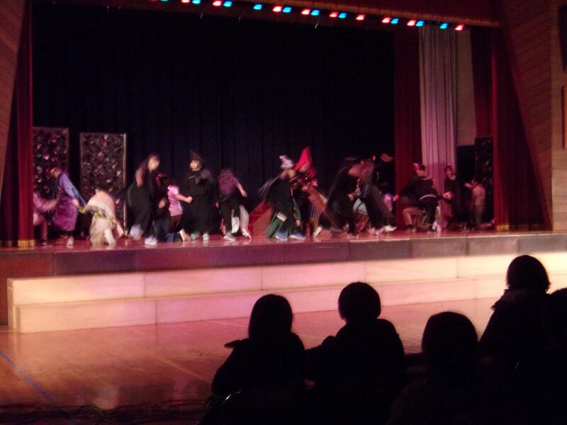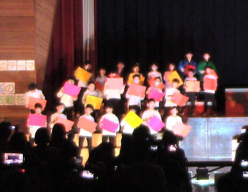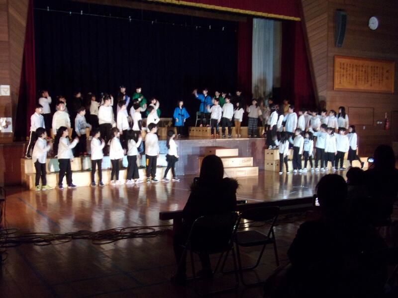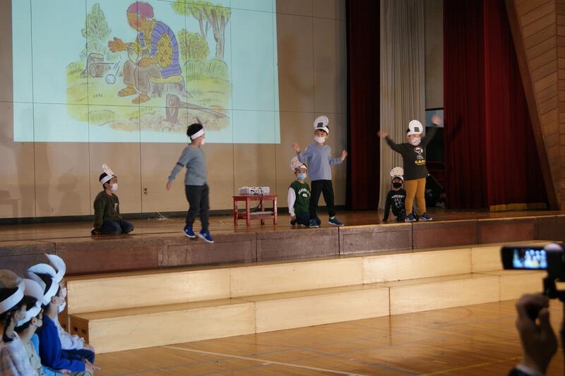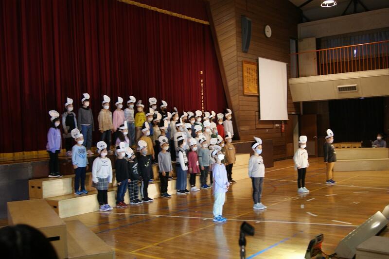3年生は劇「モチモチの木」。群読や合唱、色カードでの表現を取り入れながら、3年生らしい元気さで、迫力ある発表を行うことができました。