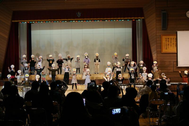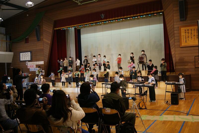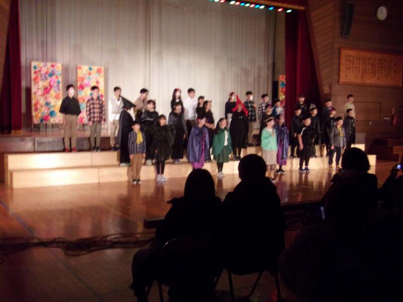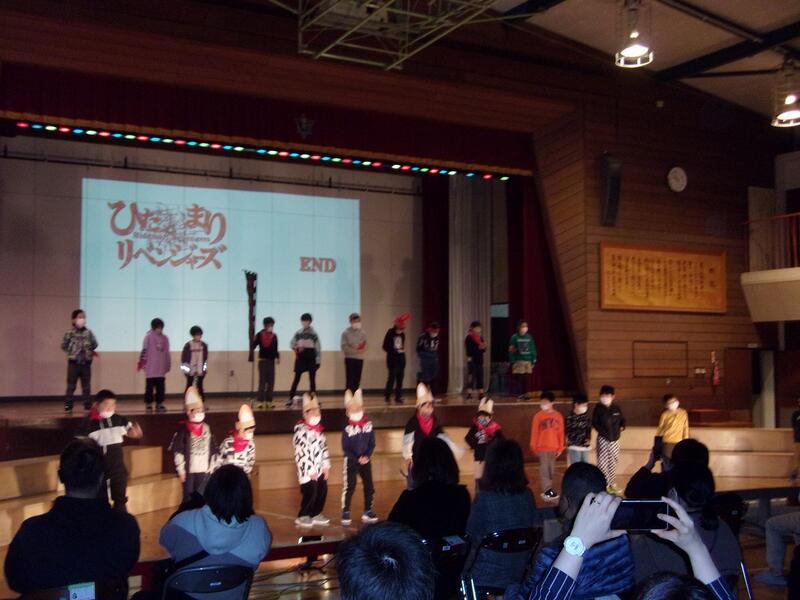ひだまり学級は「ひだまり卍リベンジャーズ」。5・6年生の劇で展開されるストーリーの中に、1・2年生の「きつねダンス」と「なわとび」。3年生の「笑点」。4年生の歌とリコーダー演奏。それぞれを組み合わせた発表を行いました。一人一人の持ち味を発揮した、笑いあり、涙あり、感動ありの発表でした。