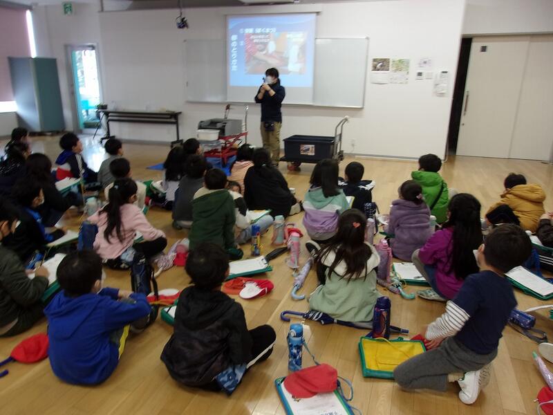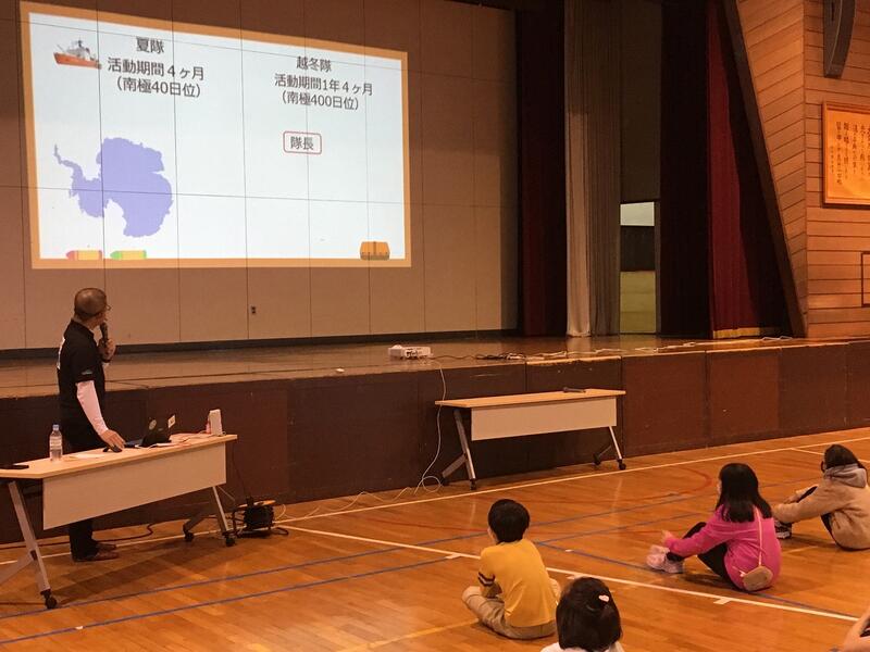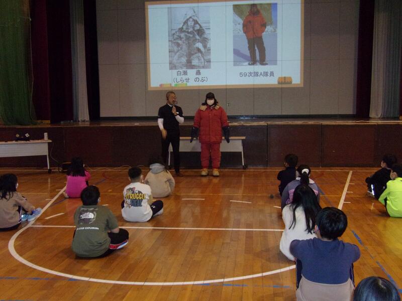 ミサワホームの南極観測隊参加経験のある方が講師となり、5年生が南極教室を行いました。講師の方に、南極の場所や自然、暮らし等を、わかりやすく説明していただきました。子供たちは、興味津々でお話を伺い、協力し合うことやチームワークの大切さ等にも気づくことができました。