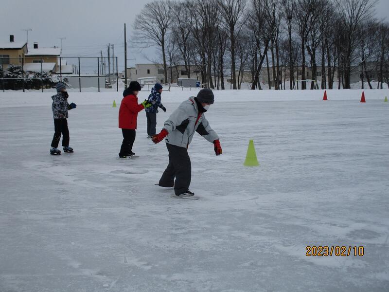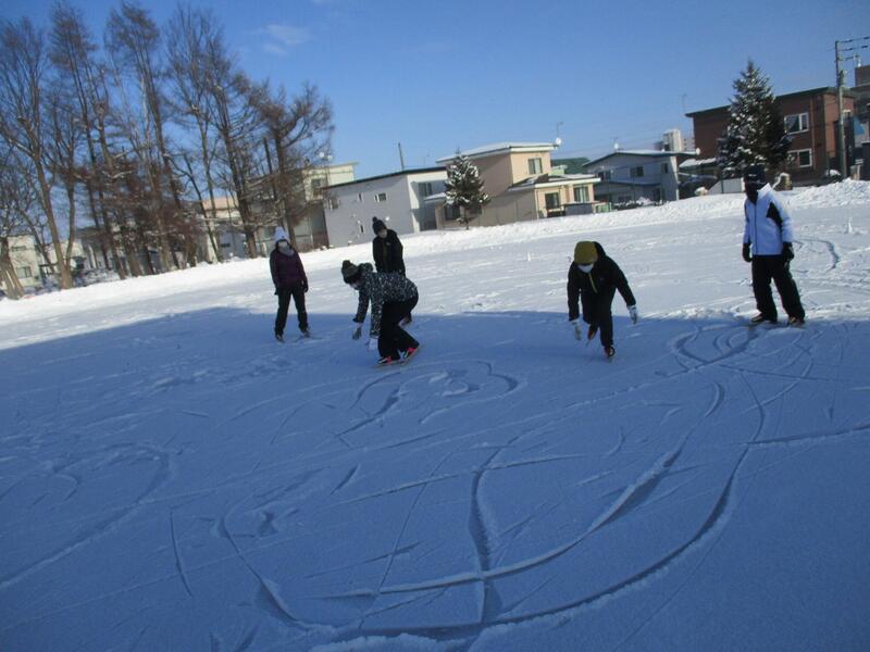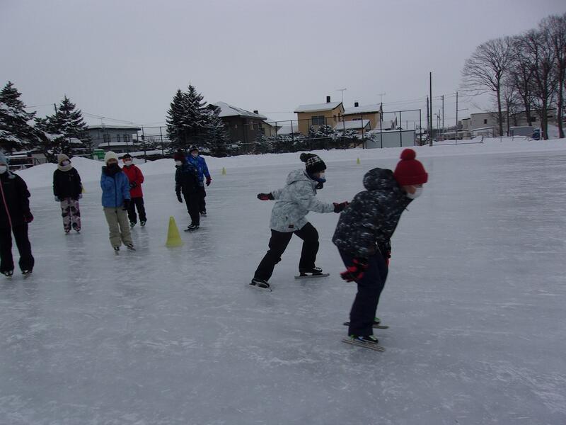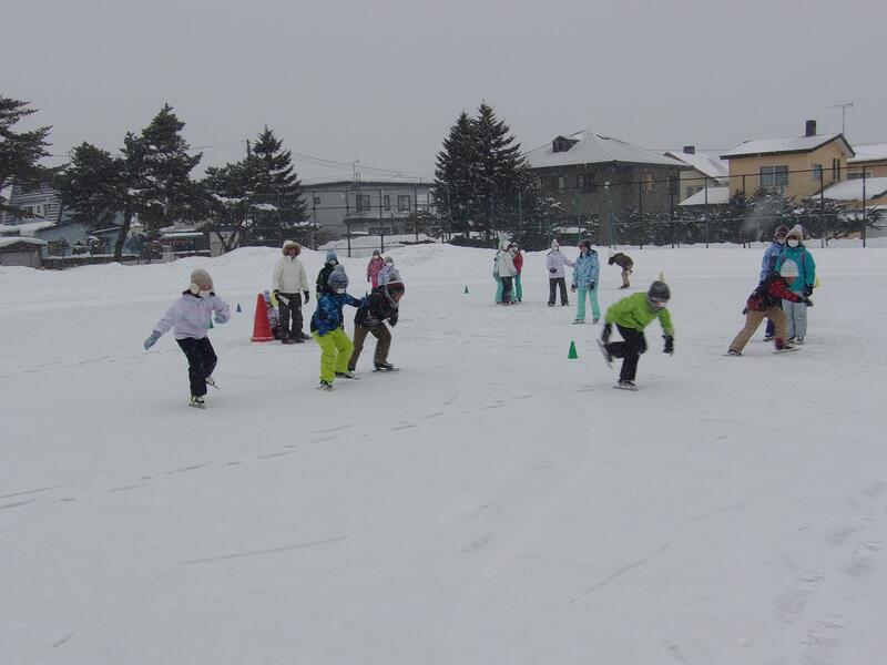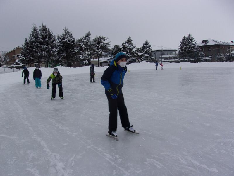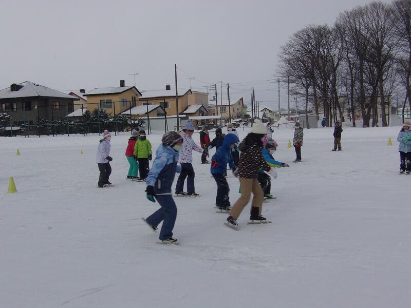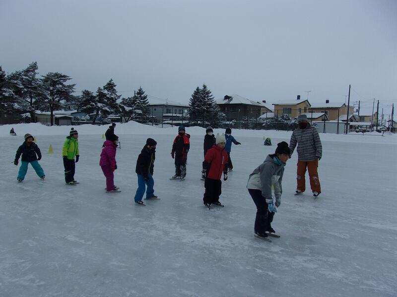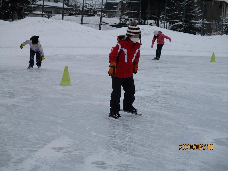 2年生は2回目のスケート学習。今朝は冷え込み、9時の時点で気温-10度。そんな中、寒さに負けず、2年生は元気に滑っていました。