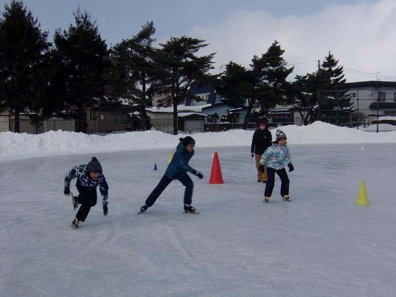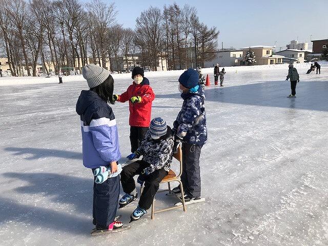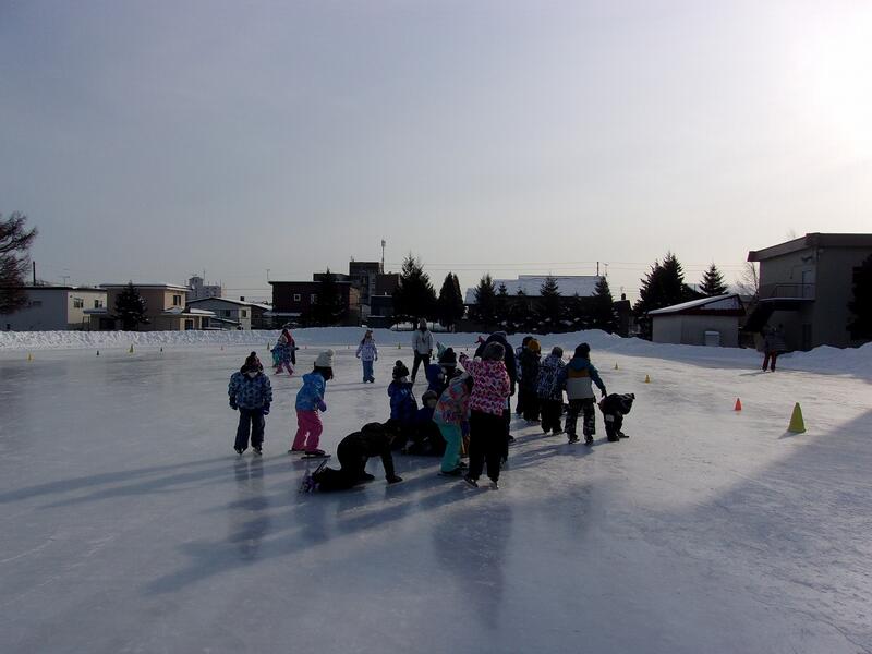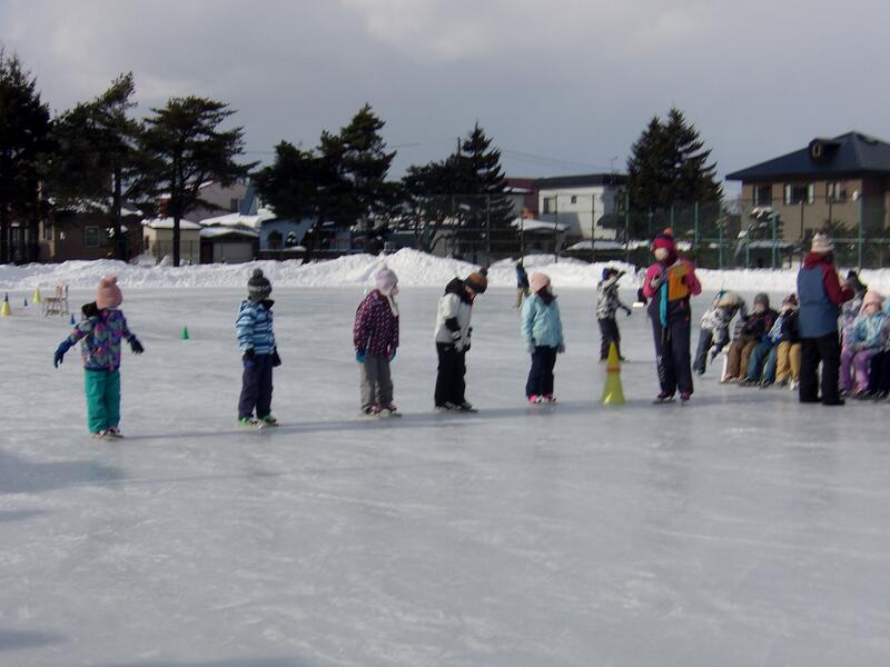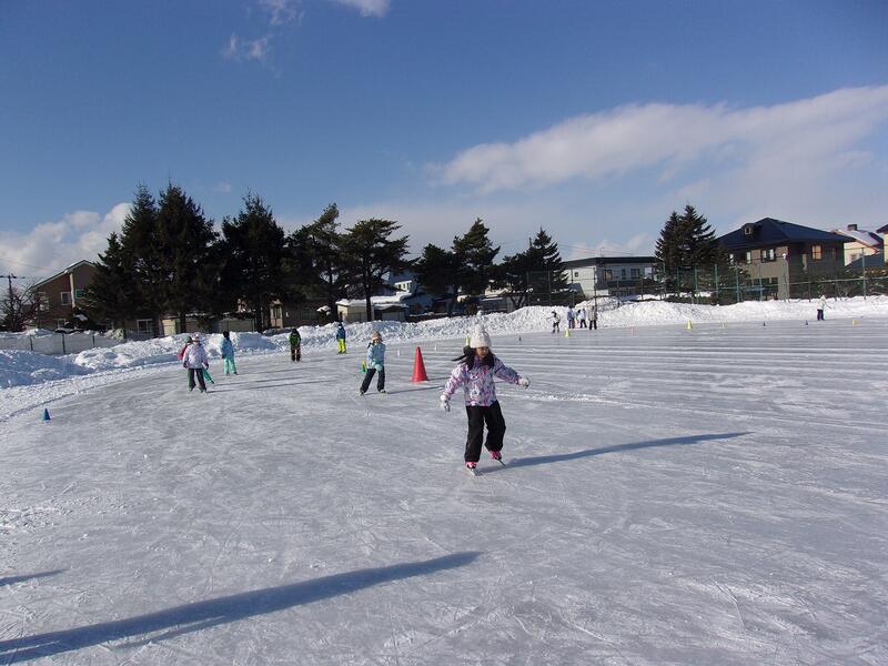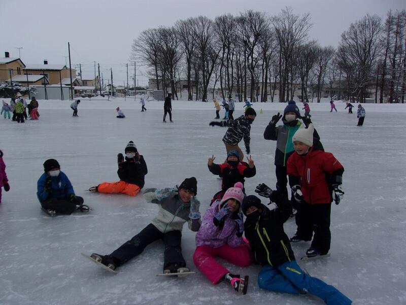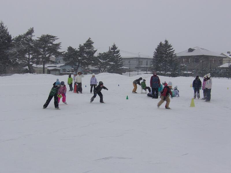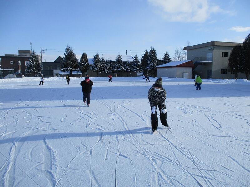 2年生は2回目のスケート学習。今朝は冷え込み、9時の時点で気温-10度。そんな中、寒さに負けず、2年生は元気に滑っていました。