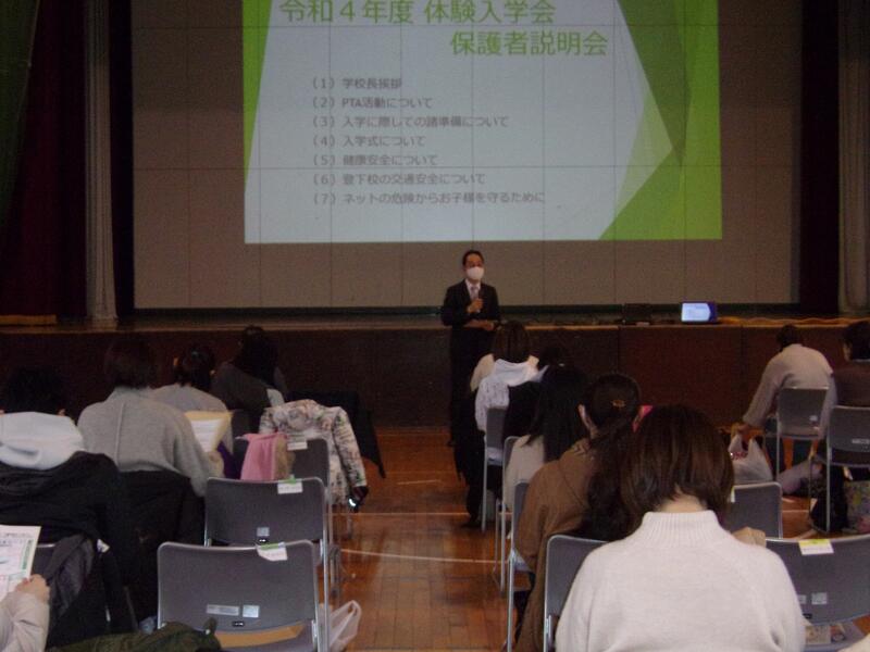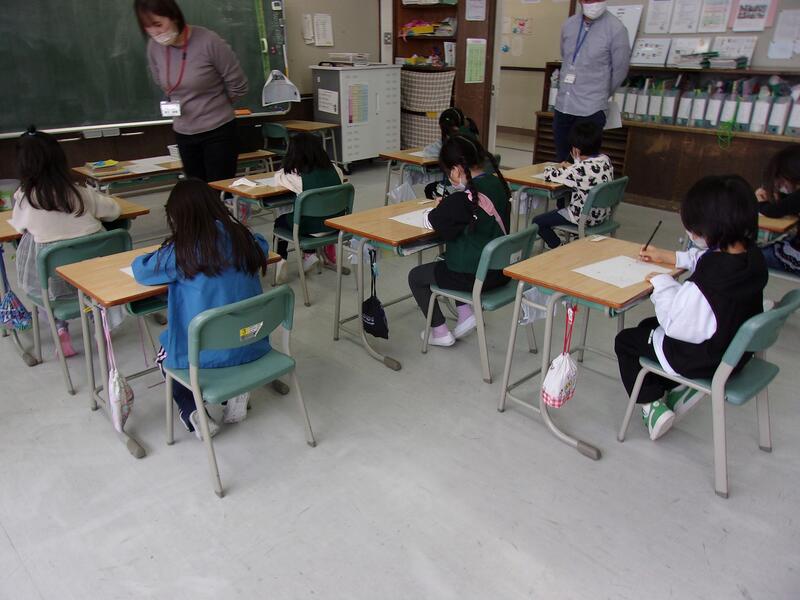令和5年度1年生の体験入学と、保護者説明会を行いました。体験入学では、挨拶や返事、書き方プリント、名前書き等を行いました。子供たちは、先生の話を真剣に聞いて、しっかりと活動することができていました。