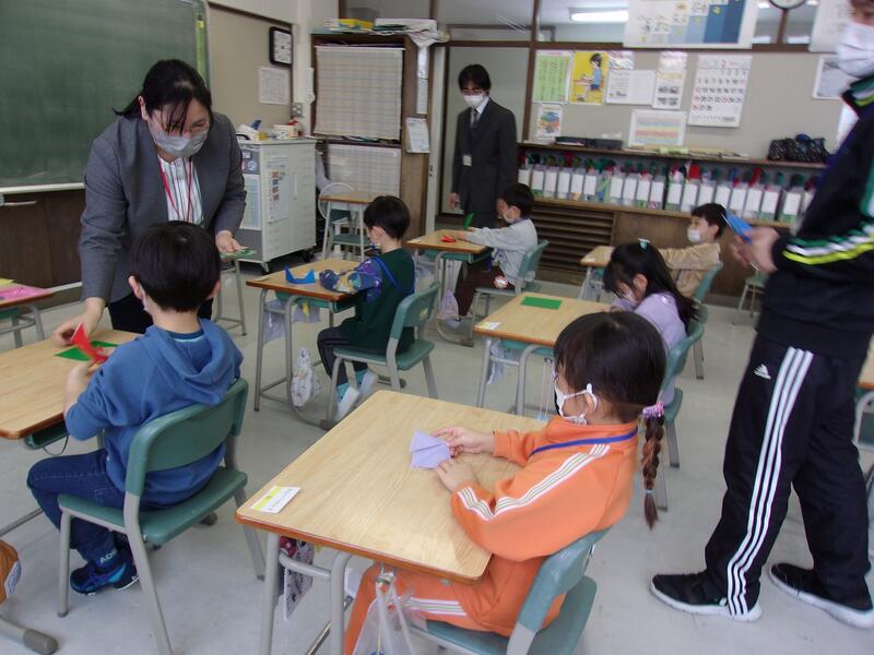 5年2組も千歳科学技術大学の先生や学生が来てくれて、プログラミング授業を行いました。世の中のプログラミングが活かされている仕組みや実際のプログラミングを体験して、子供たちは見方・考え方を広げることができました。
