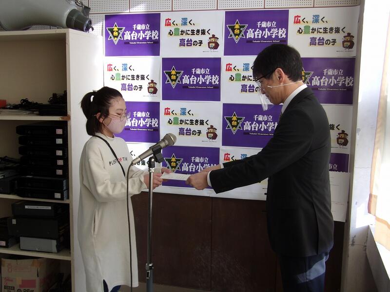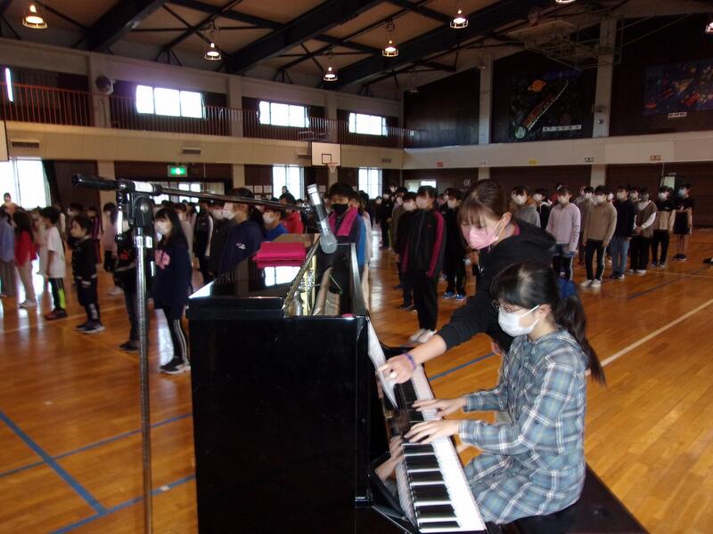 ※ 放送室で、後期児童会役員と委員長で「校歌」「新しい明日へ」を歌いました。最後の写真はその1シーンです。きれいな歌声が響き渡りました。