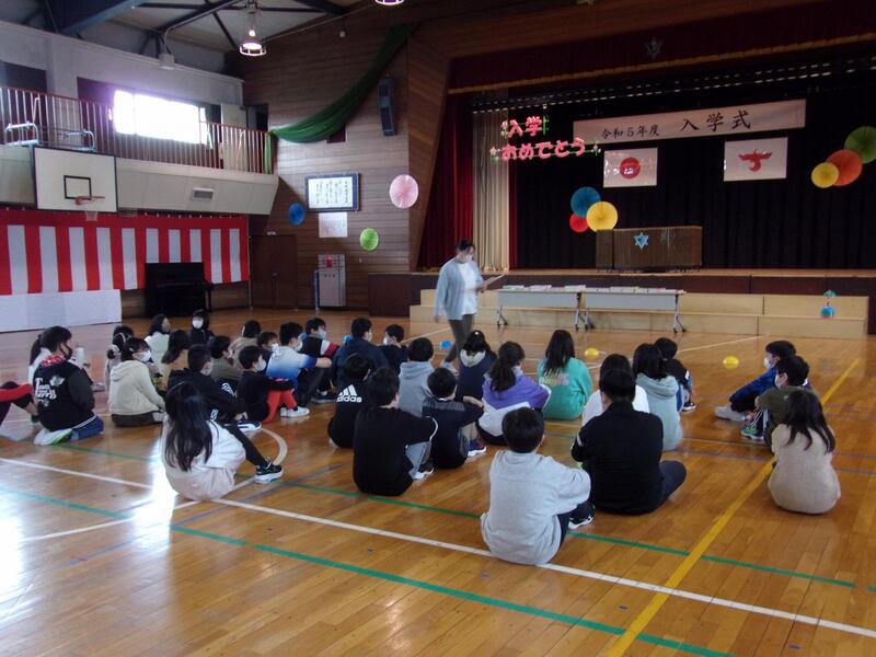 令和5年度のスタートです。子供たちは全員1学年進級し、昨年度とは違う靴箱、違う教室を使用し、笑顔があふれていました。着任式・始業式は、昨年度の修了式に引き続き、全員が体育館に集まって実施しました。校長や代表児童の話をしっかりと聞き、1年間のやる気を高めていました。
