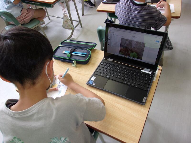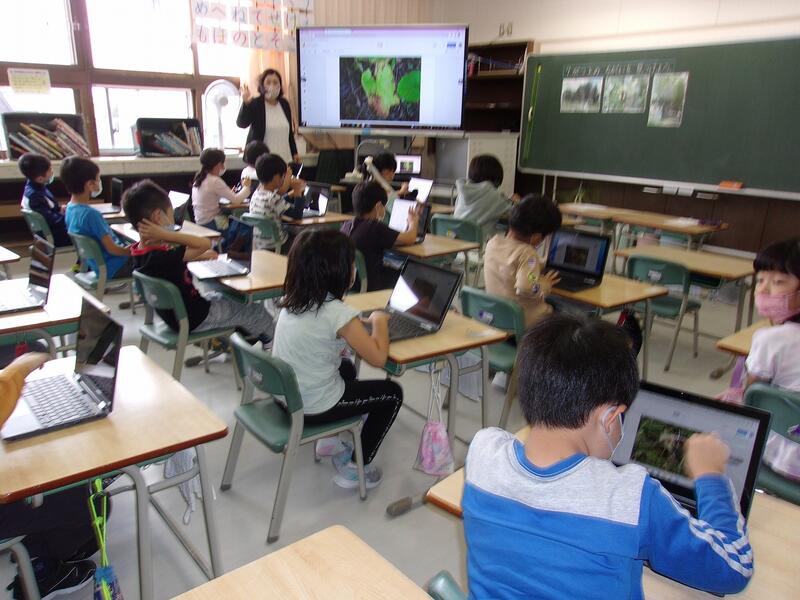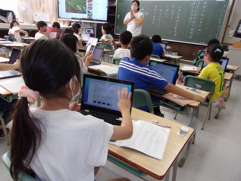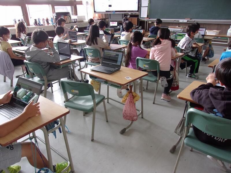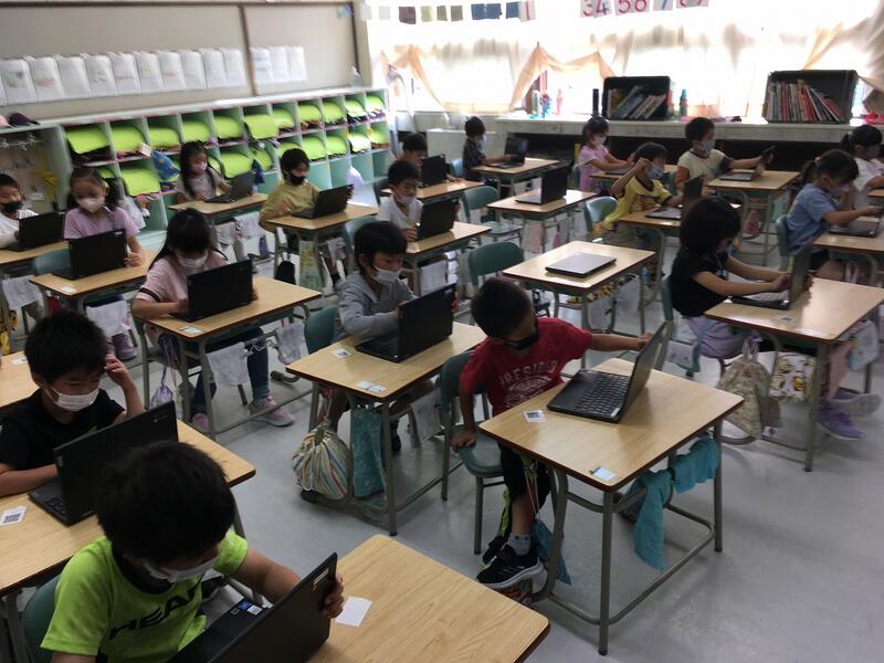 夏休み中に、全児童数分の端末が配置され、少しずつ活用が広がっています。