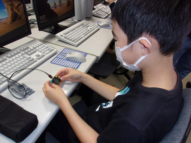 本日、千歳科学技術大学の先生が講師になっていただき、5年生がプログラミングの授業を行いました。子供たちは興味を膨らませてお話を聞き、マイクロビットによるプログラミングを体験しました。